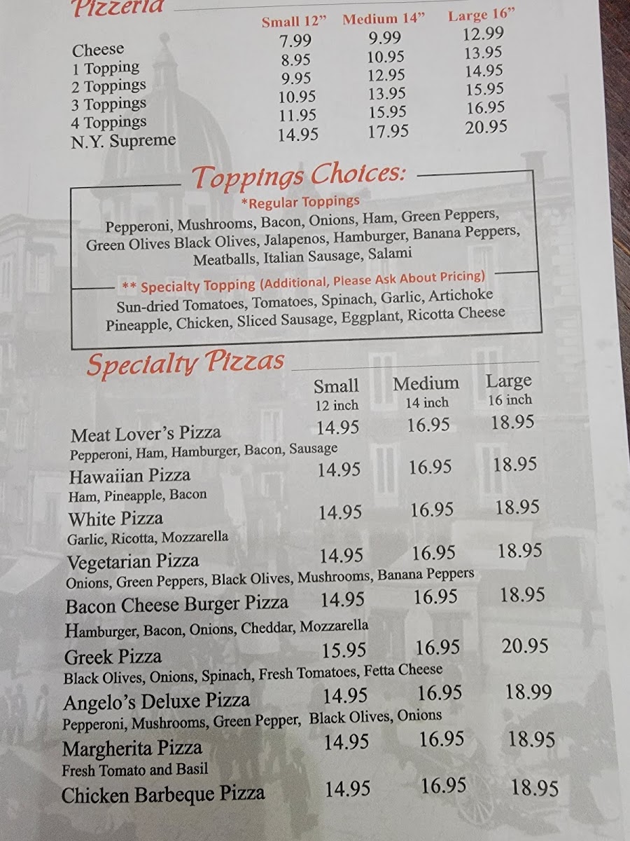 Ideal for quick lunches, relaxed dinners, takeout nights, or group gatherings, Angelo’s Pizza delivers comforting Italian flavors in a friendly, casual setting.